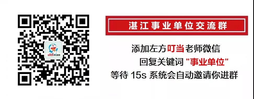 更多湛江事业单位招聘资讯、备考资料欢迎关注湛江中公教育微信(zjoffcn0759)或加入备考组织363348313及时查看!