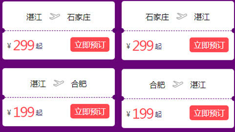 10月30日—11月底,在春秋航空旅游官网CH.COM或下载春秋航空APP购买湛江至石家庄、合肥、宁波等航线机票,还将享受双倍积分特惠活动,购买新航线机票所得双倍积分,后续购票可用于抵扣部分票价。