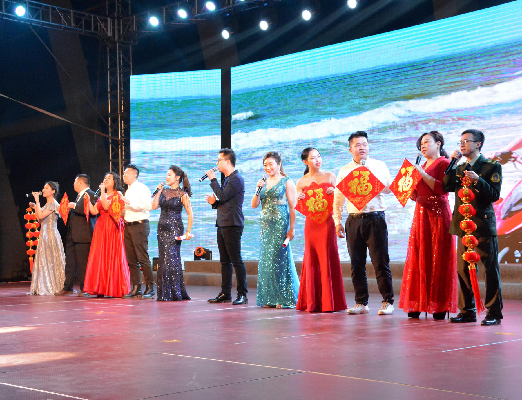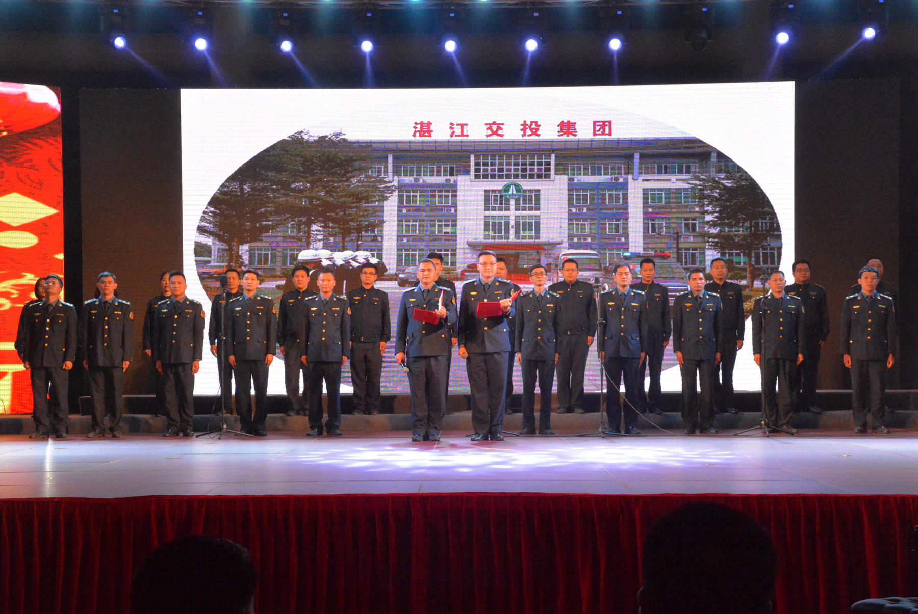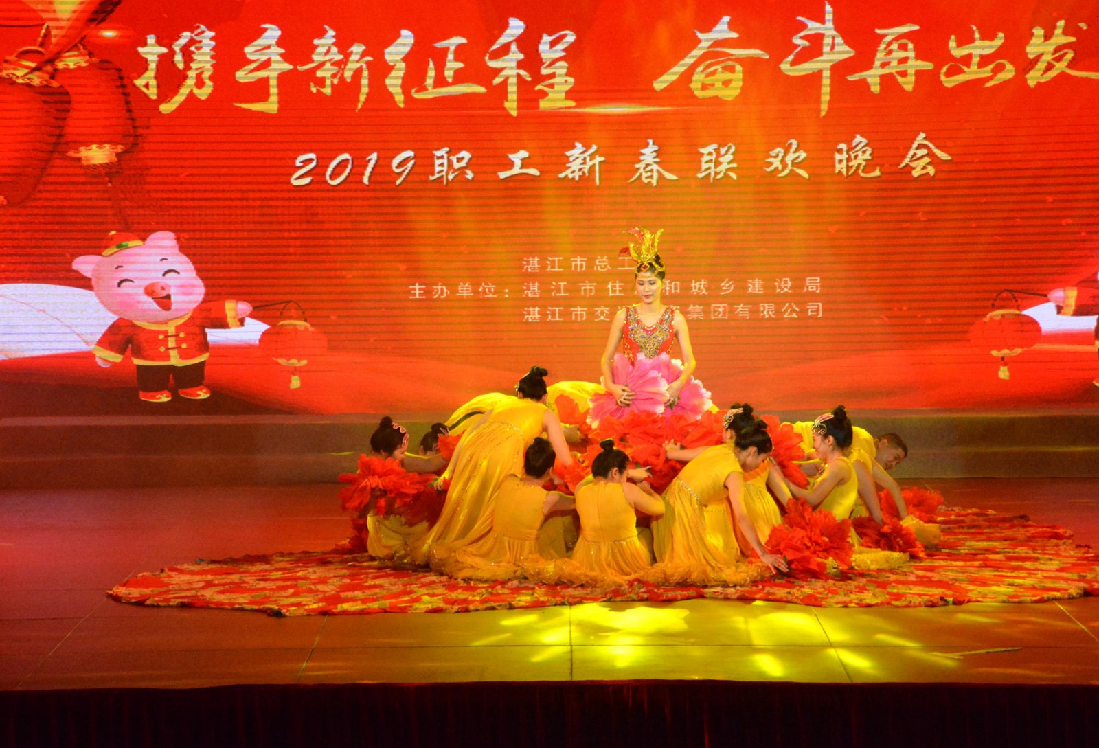 1月30日晚,由湛江市总工会、湛江市住房和城乡建设局、湛江市交通投资集团有限公司联合举办的“携手新征程 奋斗再出发——2019职工新春联欢晚会”在湛江奥体中心举行。现场气氛喜庆热烈,三家单位全体干部职工欢聚一堂,一展风采,喜庆昨日的辉煌,展望明日的美好;为祖国献上新春祝福,向同事亲人表达最美好的祝愿。