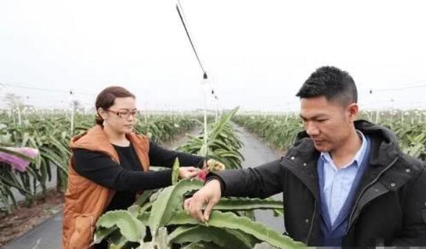 当年,他们同时辞掉工厂的工作,返乡开始在自家的地里“折腾”起火龙果。一开始只种了一小片地,后来火龙果苗慢慢长高了,能剪芽育苗,于是继续扩大种植面积。