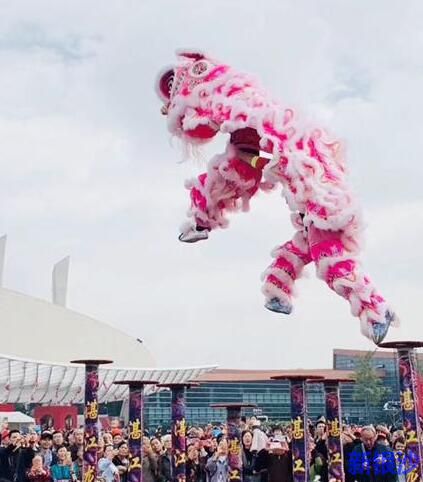 遂溪龙湾醒狮艺术团应邀参加本届活动,在成都国际非遗博览园的开幕式上进行了飞跃高桩等精彩展演,其传统南狮表演形态威武、动作细腻、步法灵活、稳健多变,套路自然顺畅、情节巧妙、惊险刺激,博得中外宾客和广大观众的如雷掌声与喝彩。