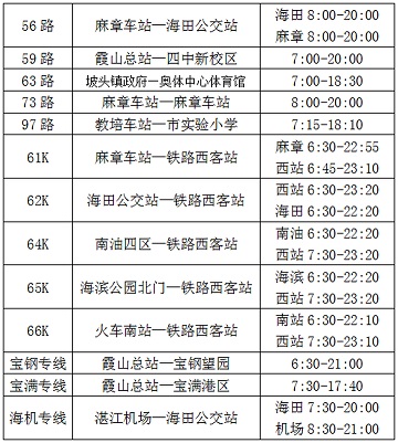详情请咨询公交服务热线3292000,或关注湛江公交微信公众号查看车辆具体运行状况。