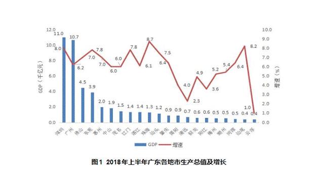 广东省2018年上半年各城市GDP增长速度 珠海,深圳,汕尾比较高