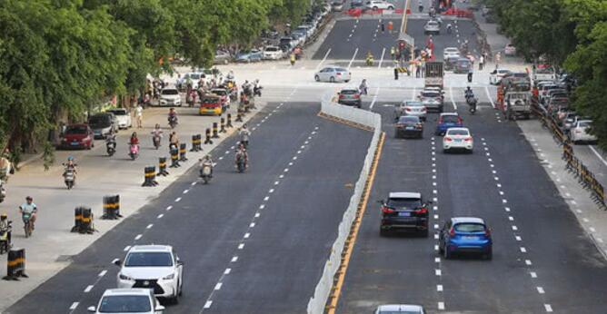 24日下午5时,赤坎立交桥原址路段临时通行后交通秩序井然。