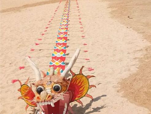 10月6日中午,由湛江吴川退休职工李立文精心制作的108米长龙风筝在湛江金沙湾成功放飞,精湛技艺惊艳全场。记者 卓朝兴 通讯员黎劲风