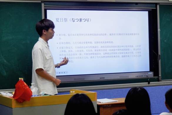 刘国锋着重讲解了日本一些特色活动,从穿着、小吃和***习俗方面展示。刘国锋充分利用图文并茂的***展示了章鱼烧、大阪烧、鲷鱼烧、波子汽水等美食,看得学生们都垂涎欲滴,纷纷表示“好想吃啊!”灿烂***的***晚会也勾起了他们的兴趣,表示以后***大了一定要去现场欣赏。刘国锋还教导学生们,要正确地对待中外文化的差异,继承中国优秀***文化的同时还要以开放和包容的心态***收外来的优秀文化。
